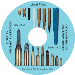 Both volumes of the standard reference book on Austrian military small arms ammunition for your computer on a CD-ROM. Explore the world of Austrian military cartridges by Acrobat Reader (included on this CD-ROM), find every matter of your special interest at once by the searching mode, surf through 900 pages of the pdf-file by mouseclicks! Price € 25,-- e-mail order